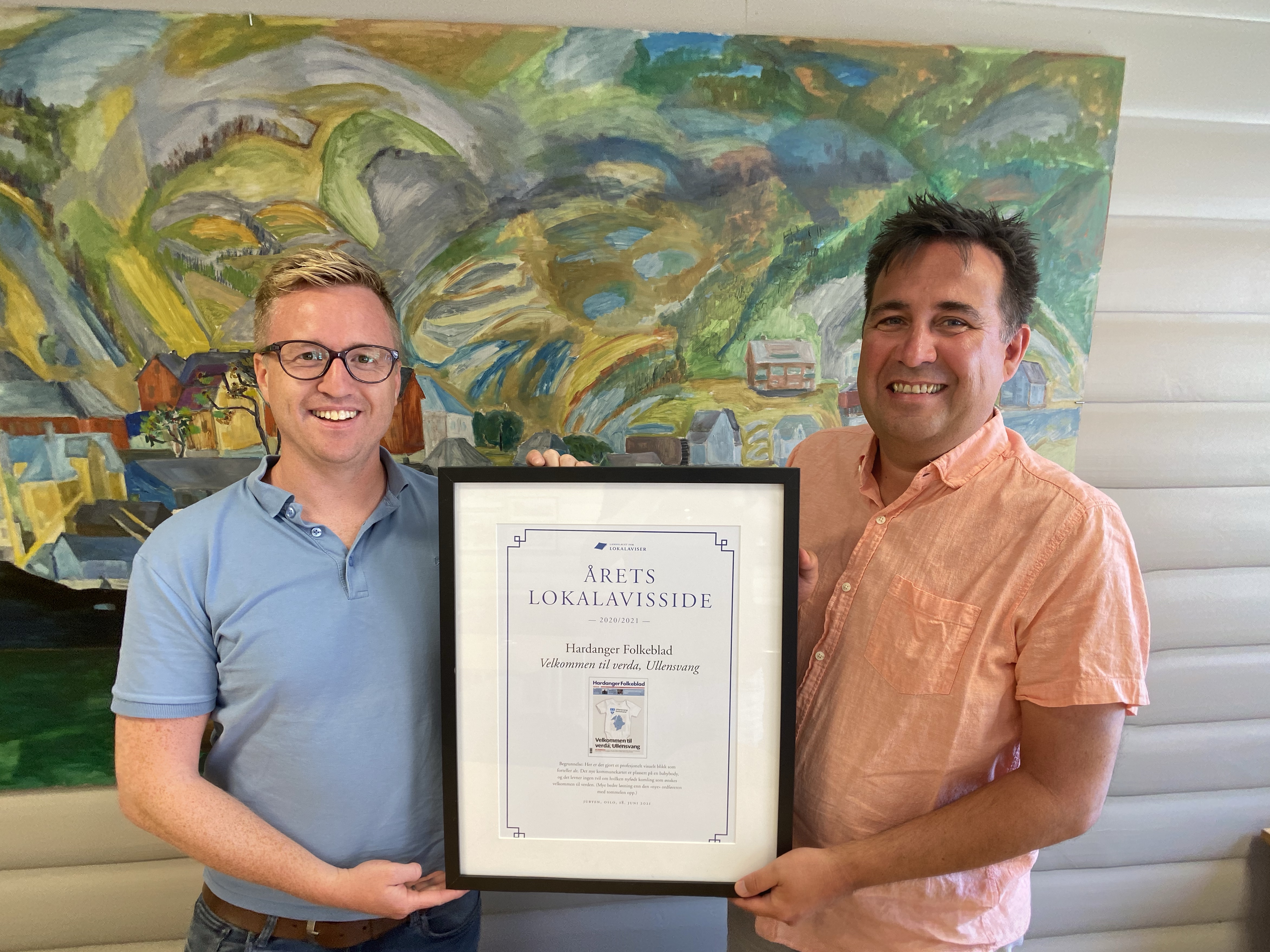 Hardanger Folkeblad fekk prisen «Årets avisside» for ei framside med ein body med tittelen velkommen Ullensvang kommune. Dette var ein ny samanslått kommune, og det var det avisa ville spela på.
