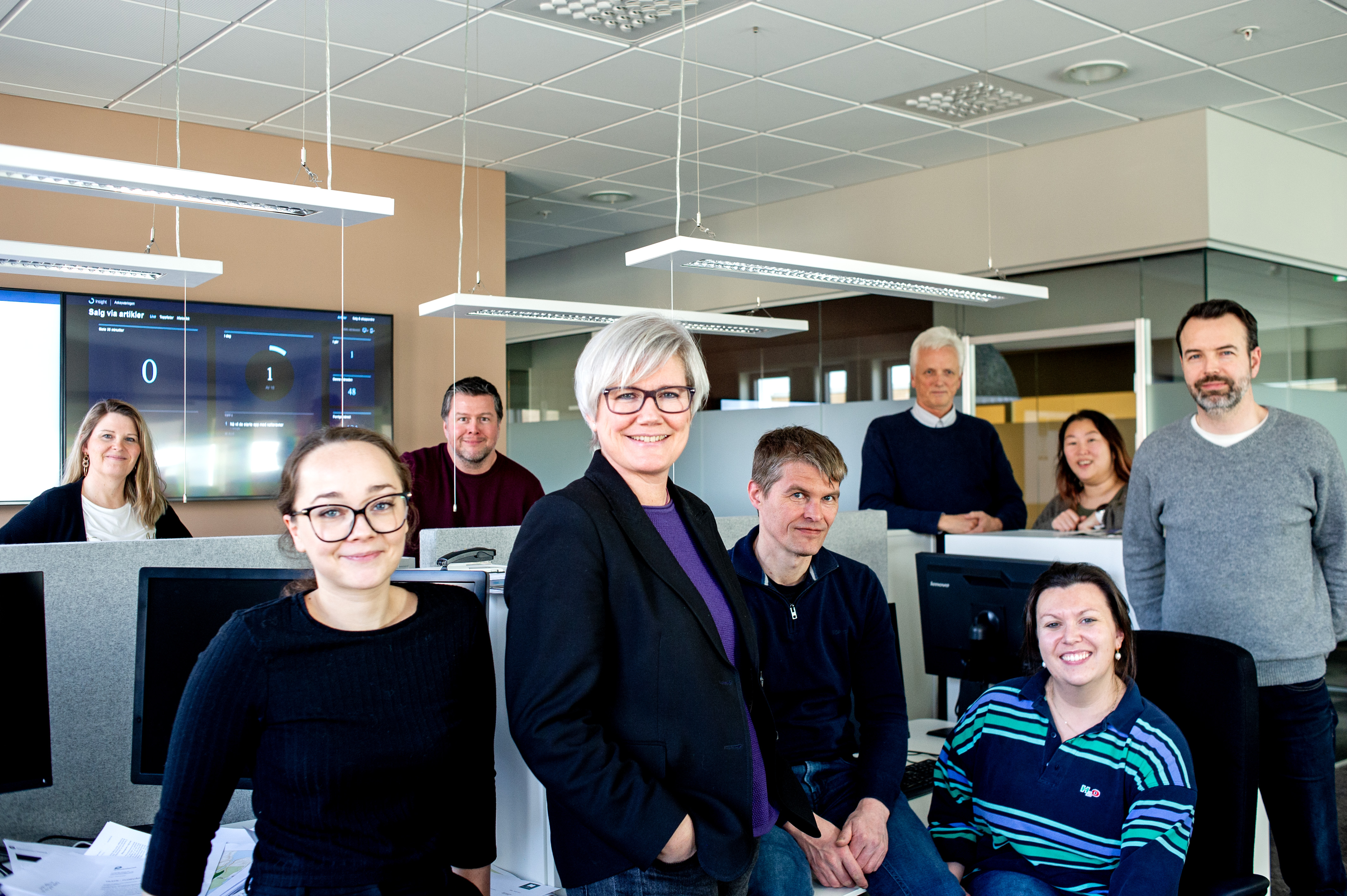 Medarbeidere hos opplagsvinneren Vestnytt: Inger Elise Økland, Kaja Distad Carlsen, Leif-Kjartan Bjørsvik, Marit Kalgraf, Kyrre Styve, Oddvin Klubben, Hilde Olsen Aalvik (framme), Anne Jo Lexander og Karstein Sæverås. Foto: Anne Jo Lexander.