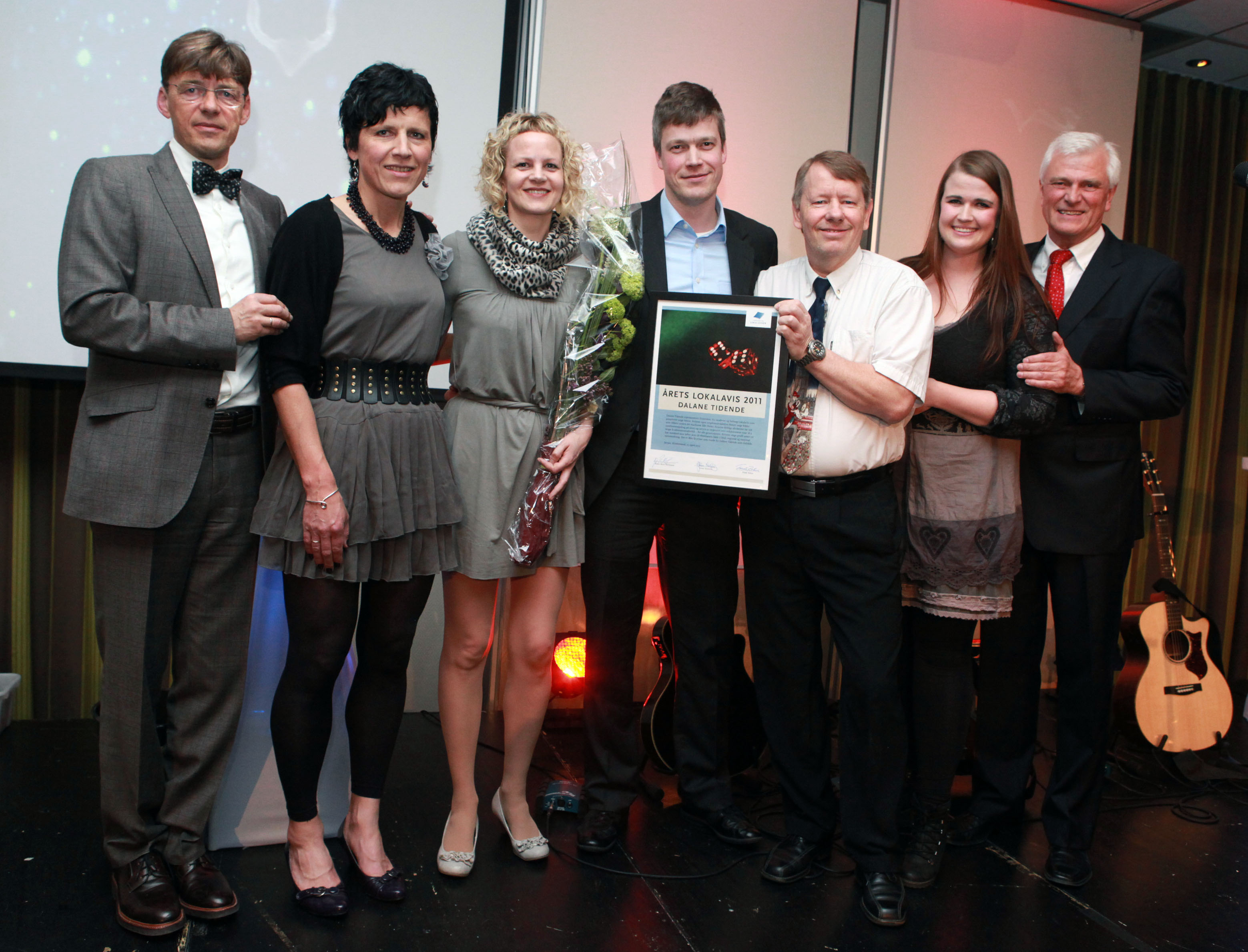 Vedlagt foto viser årets jury og fire stolte medarbeidarar i årets lokalavis. Frå v, Espen Reiss Mathisen, Universitetet i Stavanger, journalist Keth Odland , journalist Merete Horpestad, marknadskonsulent Maarten Robben, trykkerisjef Erling Svensen, Janne Nerheim, Bergens Tidende og Frode Rekve, Institutt for Journalistikk.