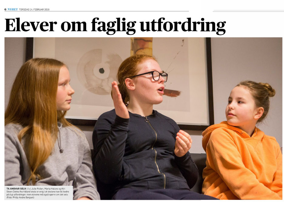 En av fire elever som besvarte elevundersøkelsen i skoleåret 2017-2018 mente at skolen ikke ga nok faglige utfordringer. Det skriver Solabladet. Journalist Malin Sofie Leirvik har snakket med 7.-klassinger om temaet, som de har mange tanker rundt. De har ulike erfaringer, men er enige om at tilpasset opplæring fungerer best. Blir undervisningen for enkel, blir det fort urolig i klasserommet. Les hele saken her.