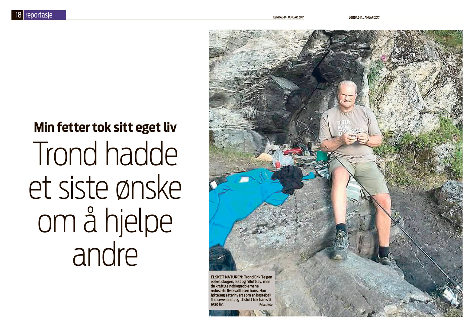 Jeg bestemte meg for å skrive Tronds historie for å belyse problematikken rundt personer med nakkeskader og selvmord. Etter en dialog med søstrene til Trond og hans andre pårørende satte jeg i gang.