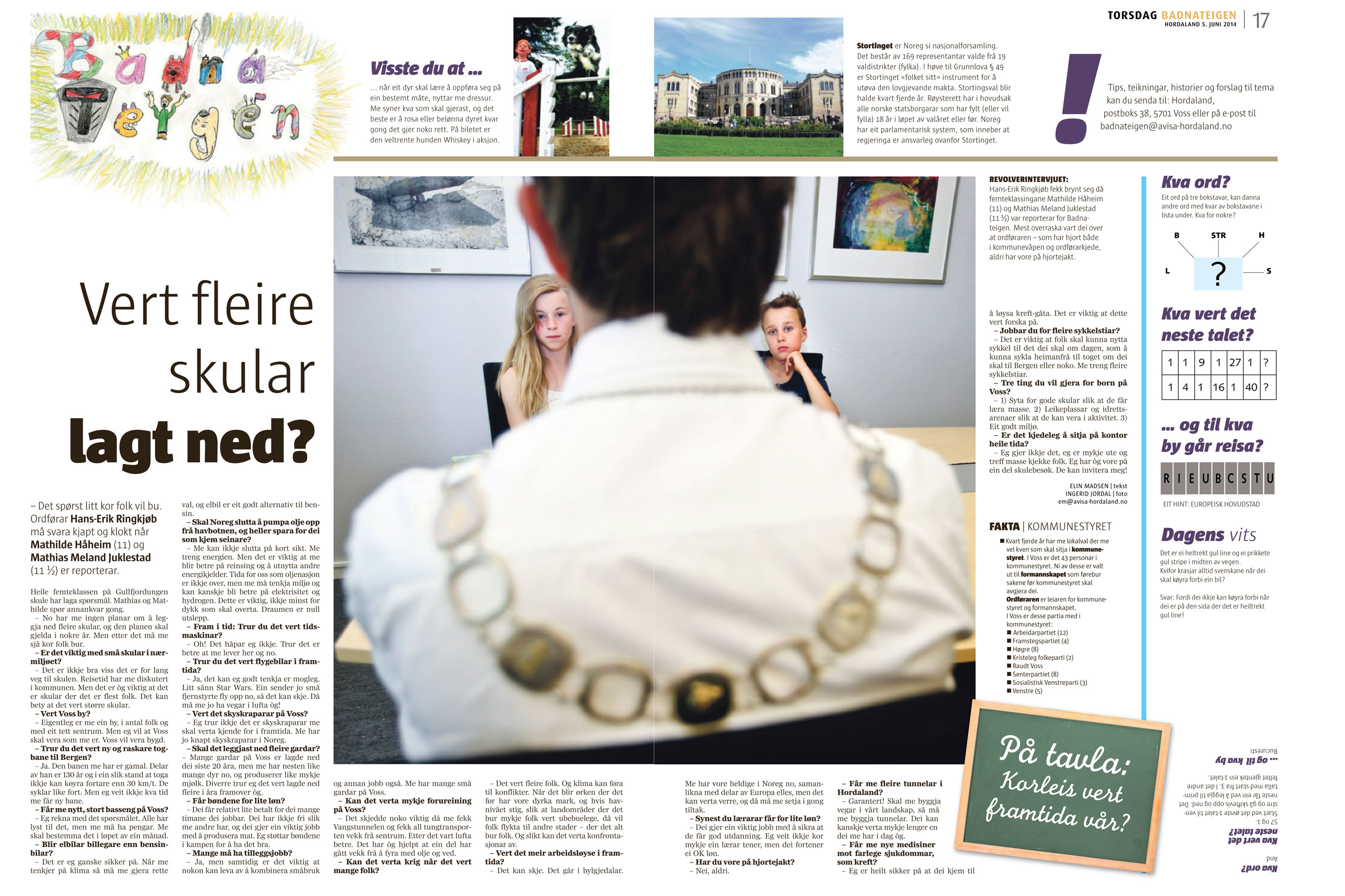 Hordaland sine sider for born heiter Badnateigen. Dei skal vera med born, for born på borna sine premisser. Sist var det borna som intervjua ordføraren.